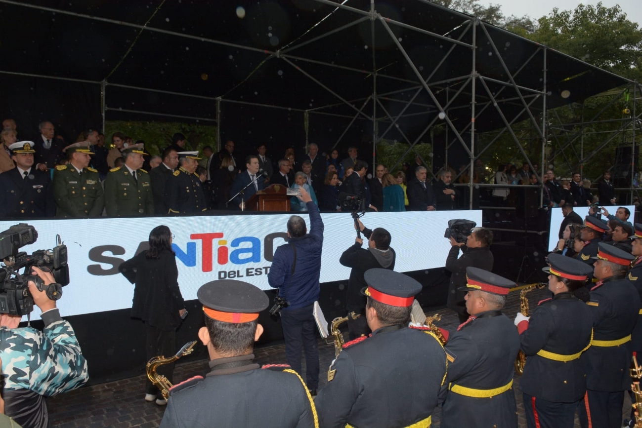 A pesar de realirse temprano, cientos de santiagueños se convocaron en los alrededores para poder disfrutar del espectáculo que se montó en la plaza principal de la provincia.