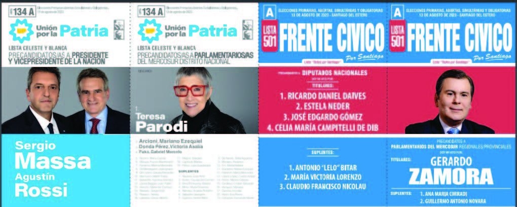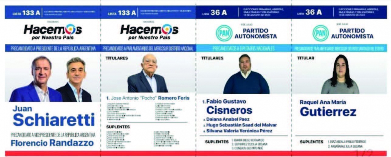 En muchos casos, en Santiago no tienen la adhesión de fuerzas locales, por lo que en ese caso sólo estarán los dos primeros cuerpos de las boletas (presidente y vice y parlamentarios del Mercosur).