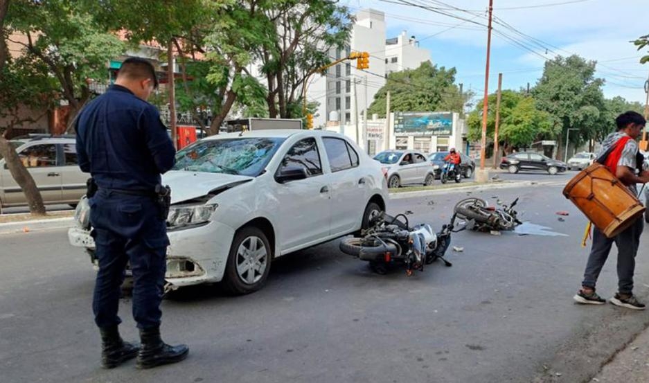 Un grave accidente dejó como saldo a dos personas heridas, cuando un automóvil se cruzó de carril y chocó a dos motociclistas. El siniestro ocurrió en la tarde de este sábado, en la intersección de Avenida Belgrano y calle Sor Mercedes.