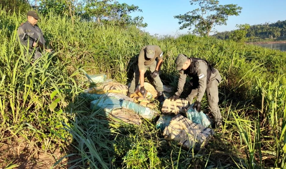 Durante las tareas de rastrillaje, los uniformados hallaron 21 bultos envueltos en cinta de grandes dimensiones con 444 paquetes rectangulares con una sustancia vegetal que arrojó resultado positivo para “cannabis sativa”, con un peso total de 506 kilos 608 gramos, al ser sometida a las pruebas correspondientes.