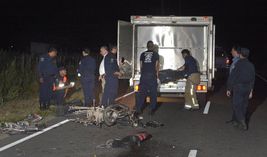 En el pavimento, los policías encontraron también cachas de la moto, pastillas de freno y partes del disco de freno de un automóvil.