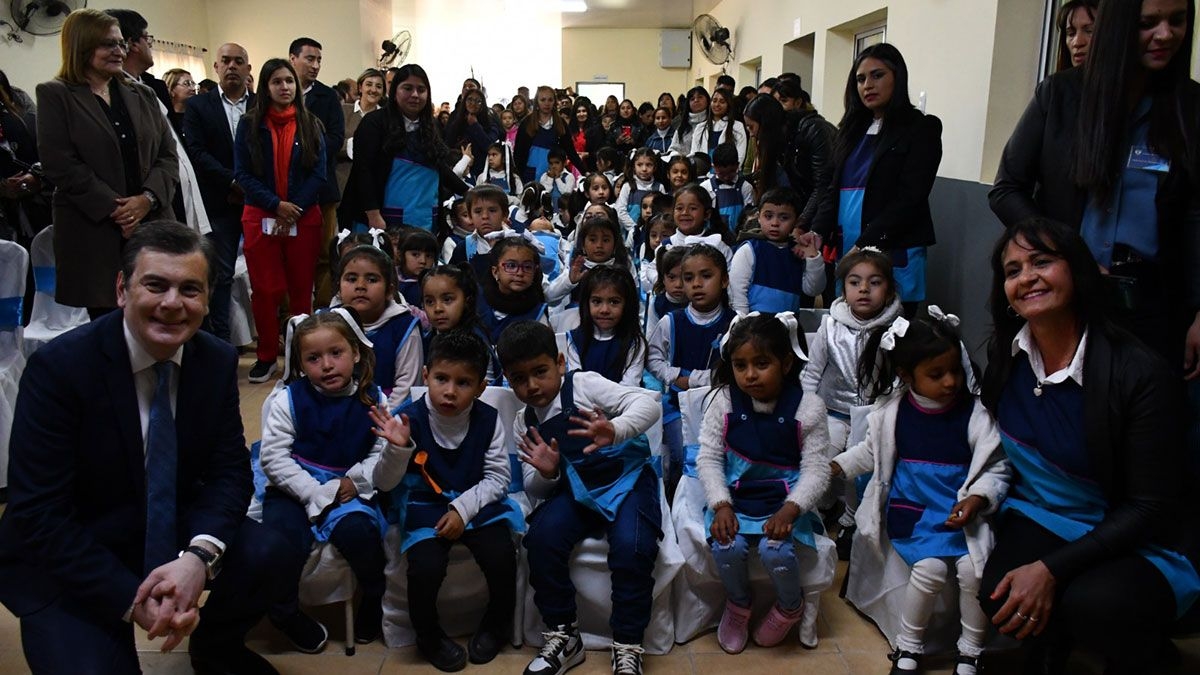Luego la comitiva gubernamental se trasladó al Jardín de Infantes N° 38, al que concurren 78 alumnos en los turnos mañana y tarde, quienes ya disfrutan de sus nuevas salitas totalmente equipadas con material didáctico y herramientas tecnológicas para iniciarlos en el mundo digital.
