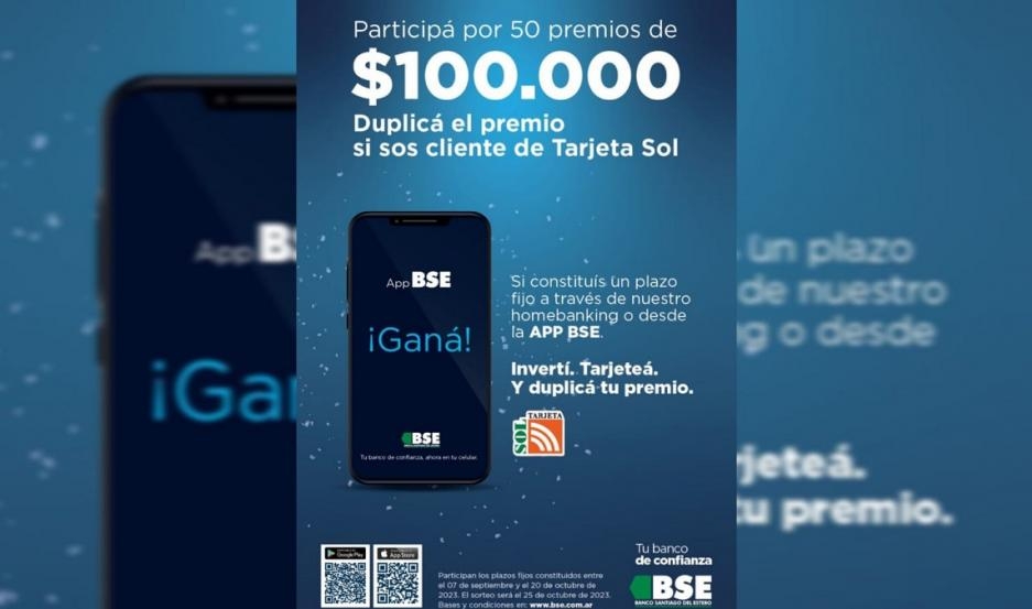 Se trata de 50 premios de $100.000 para quienes constituyan un plazo fijo a través del homebanking o la nueva App BSE.