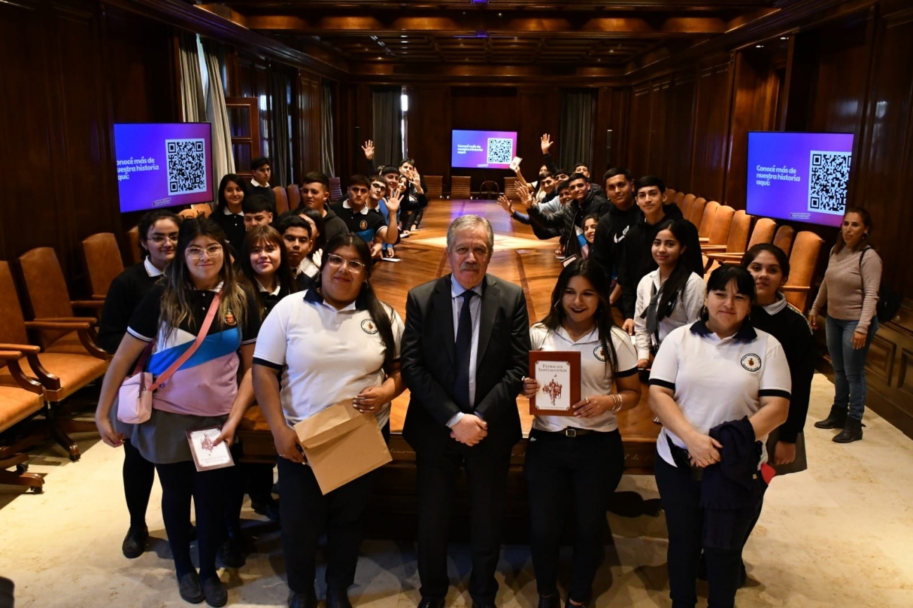 El jefe de Gabinete de Ministros, Elías Suárez, recibió en #CasaDeGobierno a una delegación de 32 alumnos del colegio Secundario Divino Corazón de Jesús, localidad de El Bobadal, departamento Jimenez.