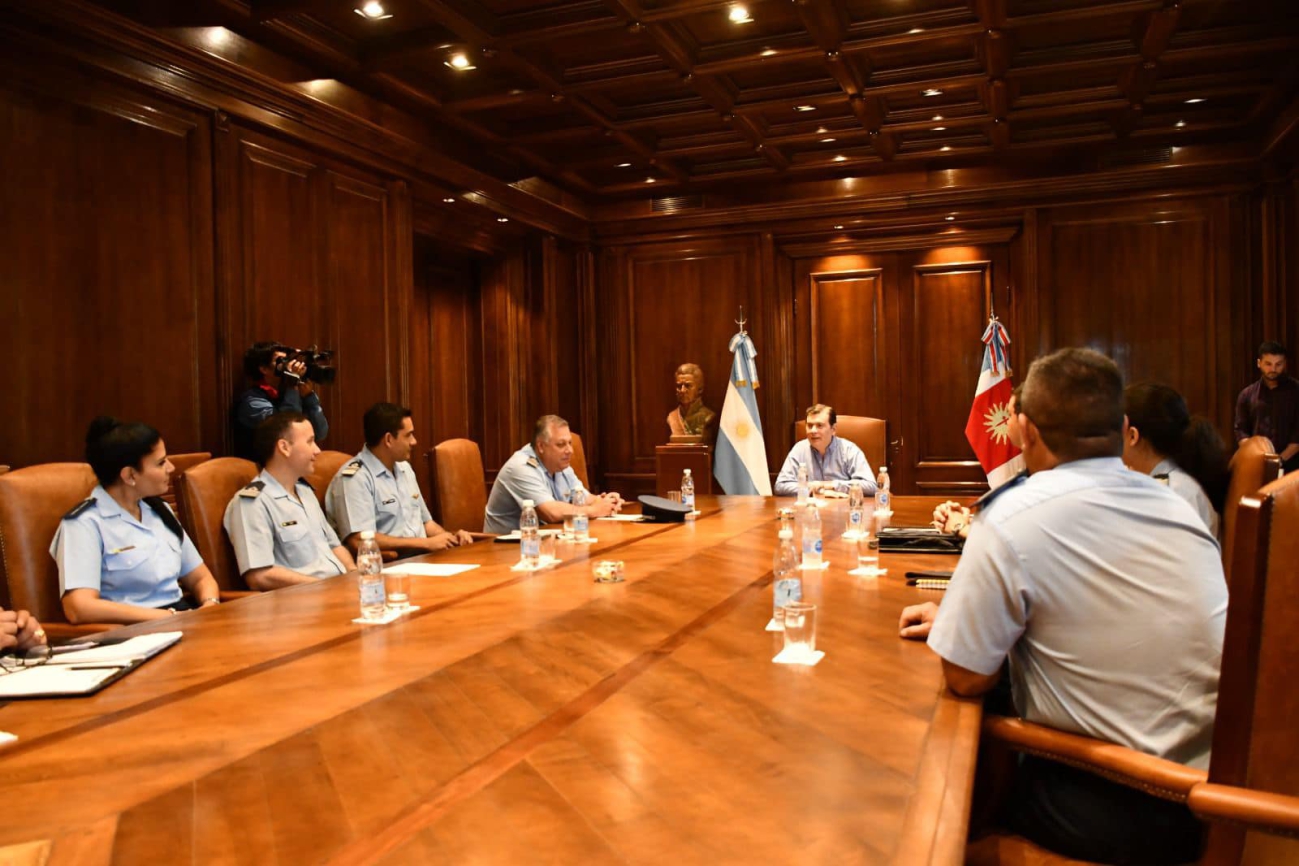 También estuvieron presentes la ministra de Justicia y Derechos Humanos, Matilde O´Mill y el jefe de Policía de la provincia, Roger Coronel, quienes recibieron al comodoro Gabriel Otero; al vice comodoro Javier Stafulki; a los mayores Andrés Els y Enzo Velardez; a los capitanes Martín Díaz y Florencia Díaz y a los suboficiales principales María José Gigena y Sergio Ochoa.