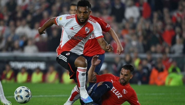 Miguel Borja anotó a los 36 minutos del primer tiempo y a los 14 minutos del complemento, mientras que Pablo Solari amplió sobre el final para la victoria del millonario que ahora es el nuevo líder de la zona A y, de paso, le saca el invicto a Carlos Tévez como entrenador de Independiente.