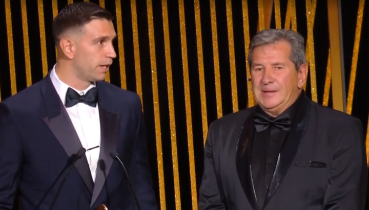 El premio Lev Yashin, en honor al gran arquero soviético, se lo entregó su papá Alberto, que ingresó por la parte trasera del escenario y se lo notó aun más conmovido que el futbolista del Aston Villa. "Una sorpresa, me sigue a todos. Sin mis compañeros de Selección ni de Aston Villa, no sería posible. Es un mimo a mi carrera, lo importante es ganar en grupo, mi familia. Tengo dos hijos hermosos, mi hermano, mi viejo", declaró el marplatense que, además, quedó decimoquinto en la pelea por el Balón de Oro.