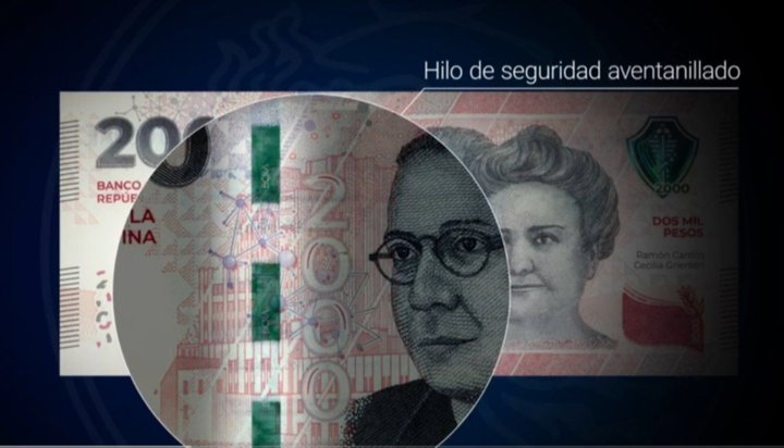 Además, el billete cuenta con identificación para personas con ceguera: en los bordes verticales se percibe al tacto el relieve del lineado de las barras paralelas.