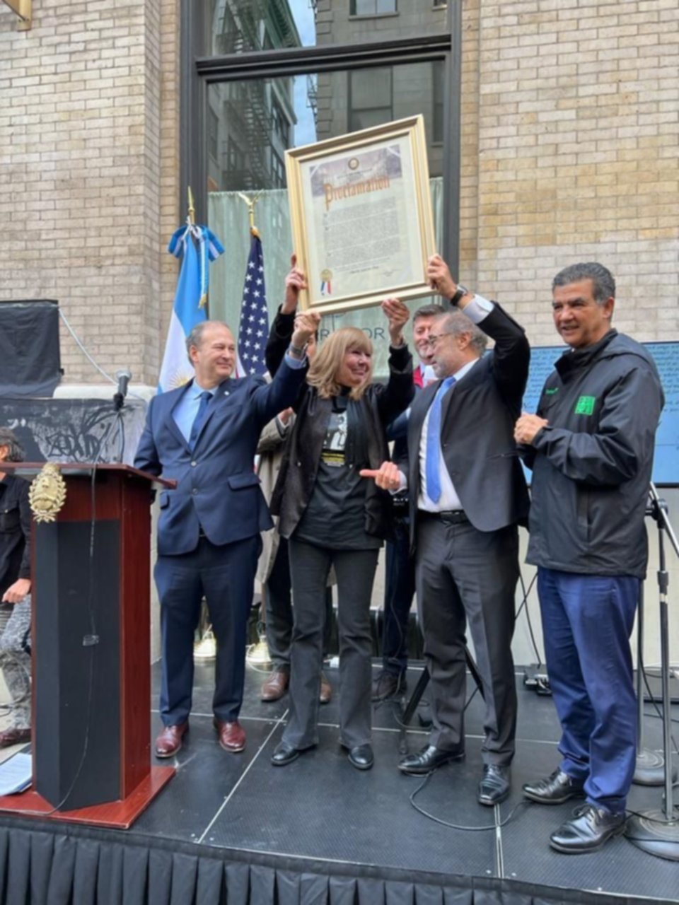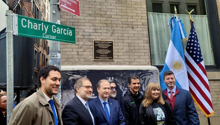 En su alocución, el embajador Argüello destacó que “es un gran orgullo para todos los argentinos que esta icónica esquina de Nueva York se llame a partir de ahora ‘Charly García Corner’. Agradecemos a las autoridades por el apoyo recibido y al alcalde Adams especialmente por la elocuente proclama en la que destaca a Charly como compositor, artista, instrumentista y cantante; homenajeamos así a un genio que ya es un ícono del rock nacional y mundial, además de una figura que está en el corazón de los argentinos”.