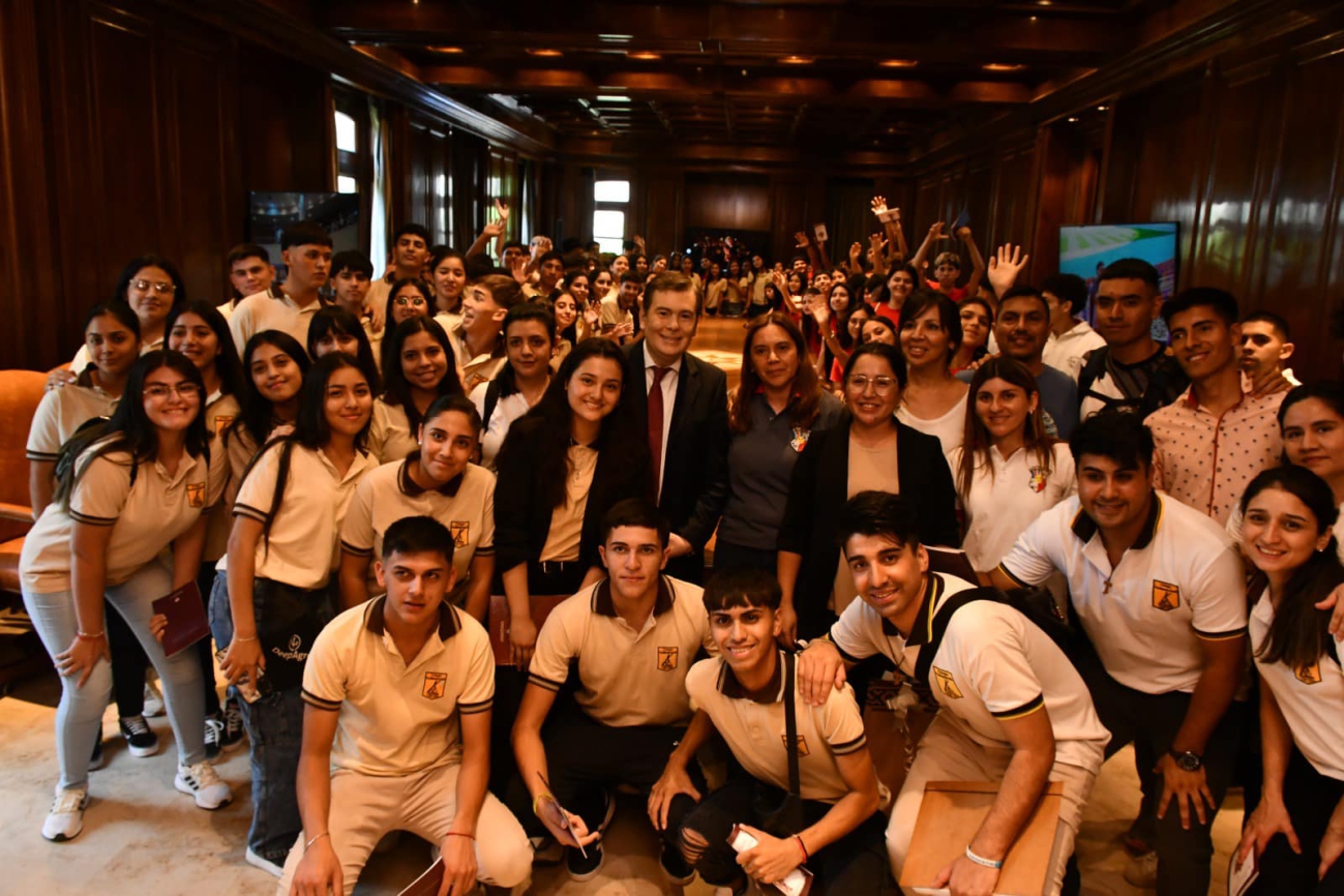 El encuentro se produjo en el Salón de Acuerdos "Juan Felipe Ibarra", junto con el coordinador del programa, Silvio Villalba, y los docentes que acompañan a los chicos en esta experiencia.