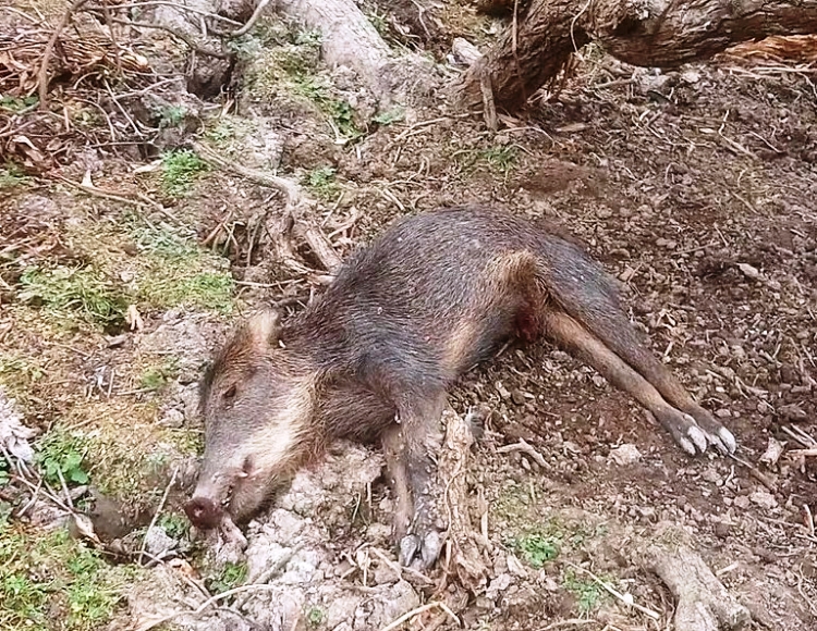 Un chancho salvaje muerto por el calor fotografiado cerca de una estancia donde decenas de animales merodean en busca de agua.