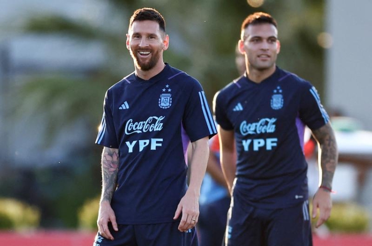 Messi se mostró muy activo en la práctica y se lo vio sonriente. Aparece junto a Martínez. Mañana el choque contra Uruguay.