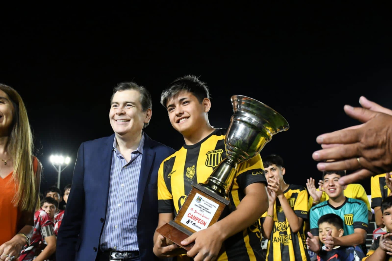 Tiempo de lectura: 23 segundosEl gobernador Gerardo Zamora participó de la entrega de trofeos a los campeones del Torneo Anual de las divisiones formativas de la Liga Santiagueña de Fútbol, donde lograron la copa, en las categorías: Sexta, Séptima y Novena, el Club Central Córdoba y en Octava, el Club Atlético Mitre.