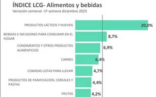 Los precios de los alimentos dieron un salto del 7,4% en la primera semana de diciembre y registró el dato de inflación de siete días más alto del año, superando al registrado en la previa al balotaje lo que hace prever que la inflación llegará al 20 por ciento mensual. La aceleración en la remarcación de precios fue de 4,1 puntos porcentuales con respecto a los siete días previos.