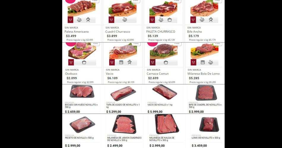 En tanto, en las grandes superficies comerciales, la mayoría de los cortes también exhiben precios por arriba de los $4.000 por kilogramo. Solo algunas excepciones como el osobuco o la carne picada, están por debajo de ese precio.