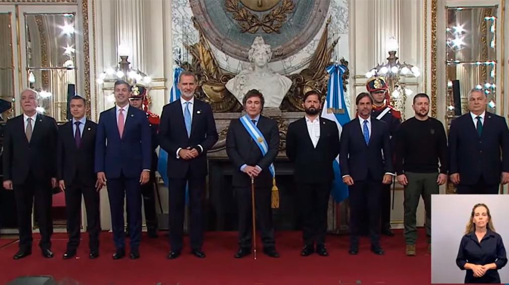 También se acercaron a la asunción los presidentes de Chile, Gabriel Boric; de Uruguay, Luis Lacalle Pou; de Paraguay, Santiago Peña, y de Ecuador, Daniel Noboa, de Armenia; el presidente de Armenia, Vahagn Khachaturyan; el primer ministro de Hungría, Viktor Orbán, el presidente de Ucrania, Volodimir Zelenski, y el expresidente de Brasil Jair Bolsonaro.