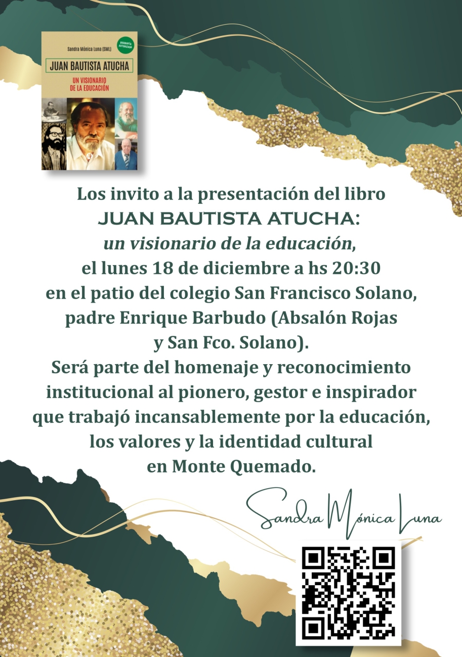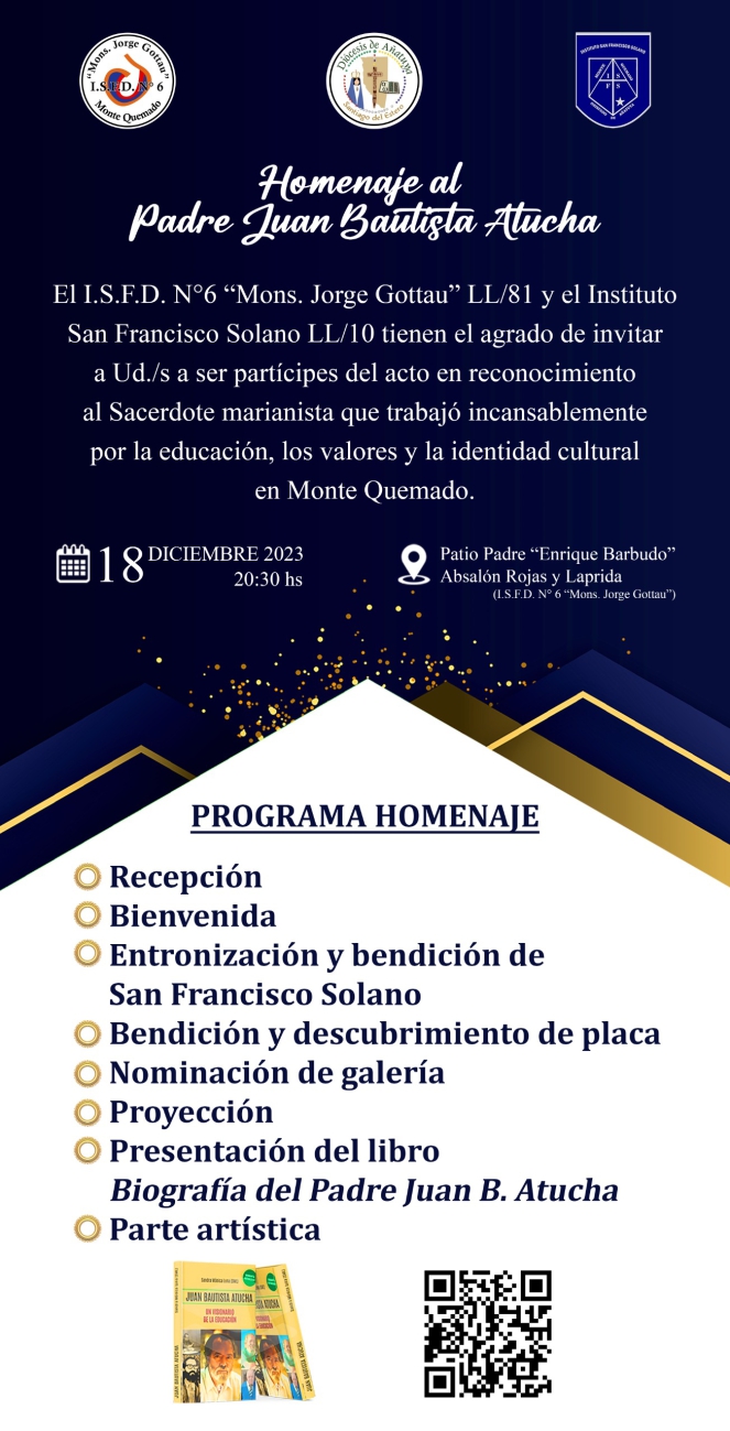 Para rendir este merecido homenaje, las instituciones I.S.F.D.N°6 Mons. Jorge Gottau, Instituto San Francisco Solano y la Escuela de danza S.F.S. se unen para realizar un proyecto interinstitucional con el objetivo de dejar a la comunidad educativa, a las nuevas generaciones de estudiantes, y al pueblo en general un legado y reconocimiento, a nuestro querido, Padre Juan Bautista Atucha.