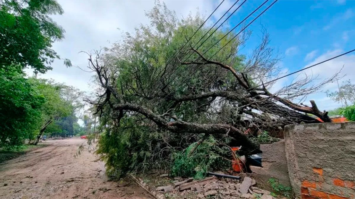Las fuertes ráfagas de viento más la lluvia provocaron voladuras de techos, caídas de árboles y postes del alumbrado público.