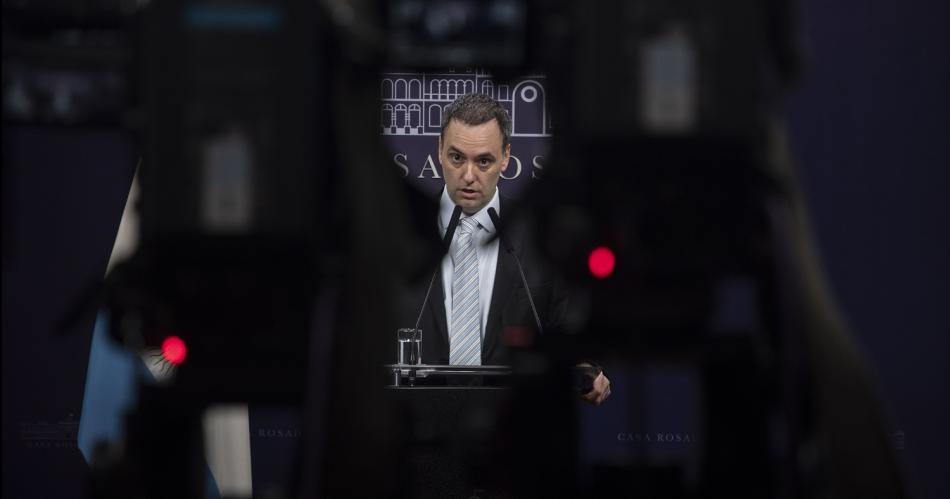 En conferencia de prensa, Adorni cuestionó la ausencia de medidas de fuerza de la CGT durante la gestión anterior cuando, dijo, en ese período "los trabajadores no dejaron de perder poder adquisitivo y la inflación fue en torno al 900%, para usar números redondos".