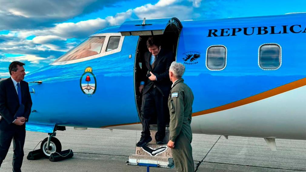 El jefe de Estado viaja acompañado por la ministra de Relaciones Exteriores, Comercio Internacional y Culto, Diana Mondino; los ministros de Defensa, Luis Petri, y del Interior, Guillermo Francos; y su hermana, la secretaria General de la Presidencia, Karina Milei.