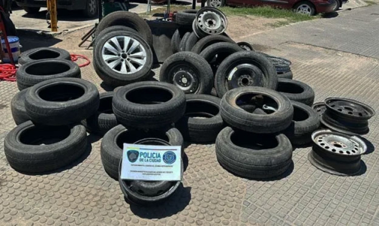 En total, tenía a la venta cinco ruedas completas de distintas medidas, seis llantas, dos de ellas pertenecían a cuatriciclos, una de moto y dos de autos, y 21 cubiertas usadas.