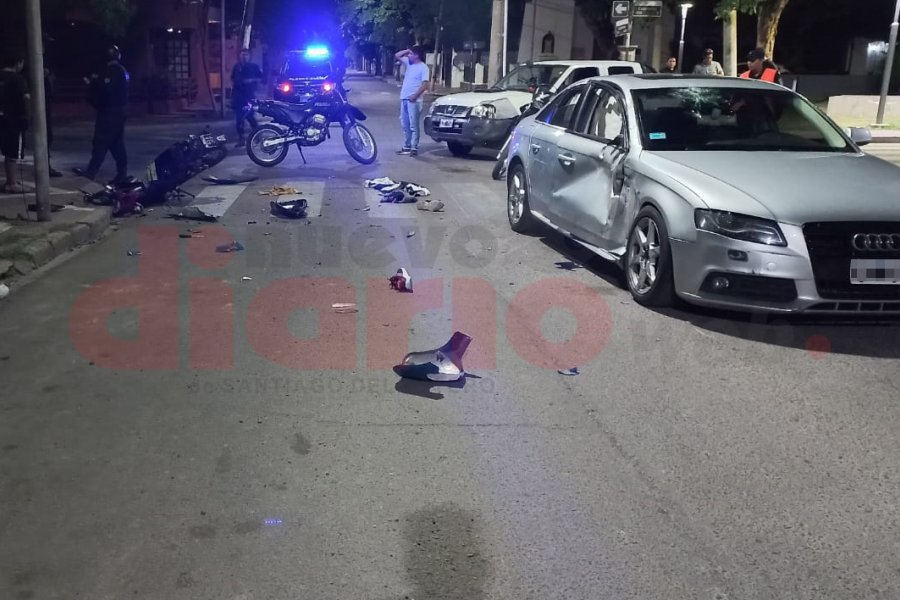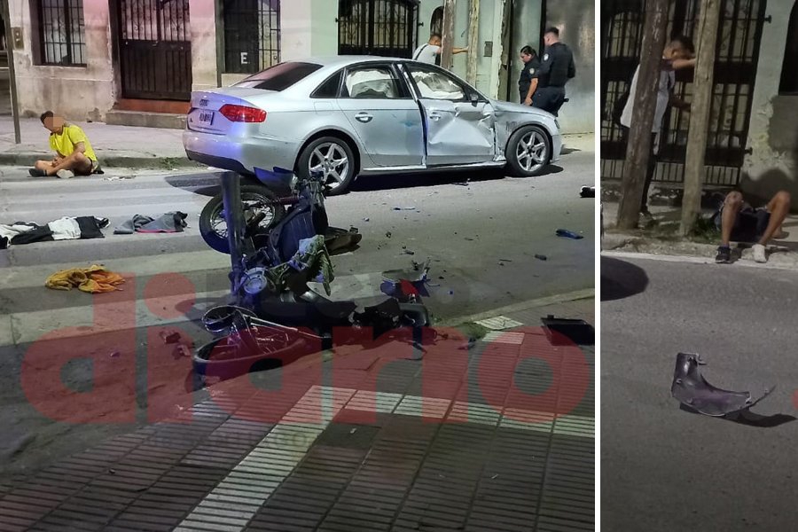 Al llegar a la esquina de 24 de Septiembre embistieron a un automóvil a la altura de la puerta del copiloto. El rodado menor quedó destruido por completo y los motociciclistas fueron asistidos por personal médico, tras lo cual quedaron aprehendidos.