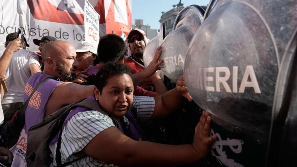 Efectivos de la Gendarmería y de la Policía Federal intervinieron esta tarde para desalojar a manifestantes de agrupaciones políticas de izquierda y de organizaciones sociales ubicados sobre la avenida Entre Ríos, frente al Congreso Nacional, con el objetivo de liberar la vía pública que habían ocupado como parte de la protesta contra los proyectos impulsados por el Gobierno.