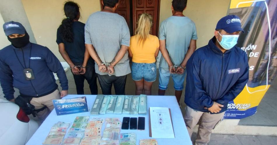 Personal de la Dirección General de Seguridad Vial de la Policía de la provincia detuvo este miércoles por la mañana a tres hombres y una mujer que circulaban por ruta 89, cuando fueron retenidos en un control vehicular en el puesto de Suncho Corral-Corral Grande, en el departamento Juan Felipe Ibarra, donde se detectó un cargamento de 5,875 kilogramos de marihuana.