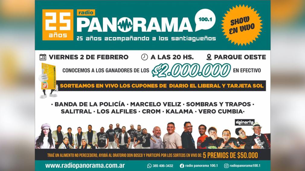 Tal como se lo había anticipado, Radio Panorama festejará sus 25 años con todo. Es por eso que este viernes 2 de febrero lo celebrarán con un festival solidario en el Parque Oeste.
