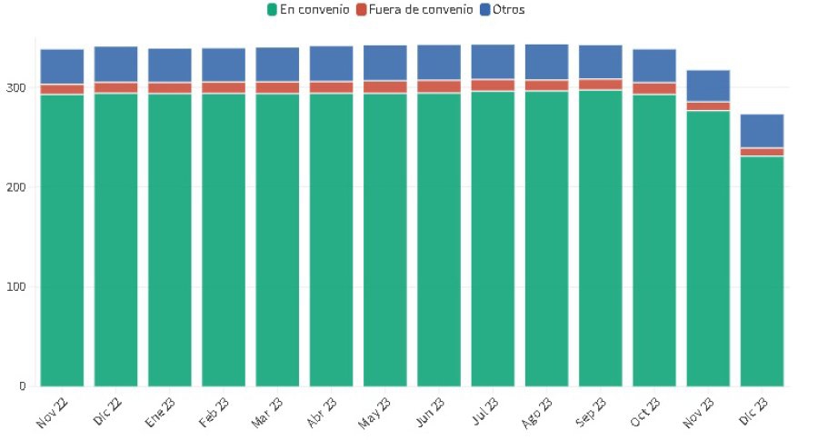El resto de los trabajadores que dejaron de formar parte del Estado, se explican en realidad por cambios en las plantas de personal de las empresas estatales. Entre todas empleaban a 96.423 personas a finales de noviembre y bajaron a 85.163 personas en diciembre (11.620 menos).