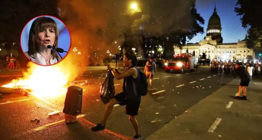 Bullrich informó que el Gobierno presentará una denuncia penal y solicitará la identificación de todos los responsables de los actos vandálicos, incluyendo aquellos que quemaron bienes públicos, arrojaron piedras y atacaron a funcionarios policiales. En su cuenta de la red social X, la ministra expresó: "Vamos a ir a fondo en la causa, investigar a cada uno de los involucrados y pedir la expulsión de los dos chilenos partícipes de este desastre".