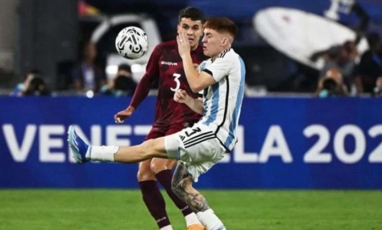 La selección argentina Sub-23 empató 2-2 con Venezuela en el inicio de su camino en la fase final del Preolímpico, que otorga dos pasajes para disputar los próximos Juegos Olímpicos de París 2024.