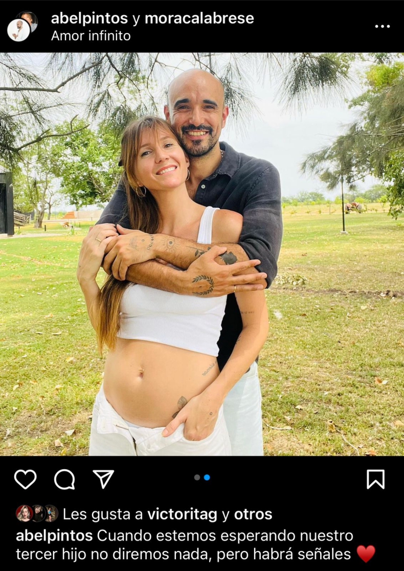 Abel Pintos anunció a través de su cuenta oficial de Instagram que será papá con Mora Calabrese una vez más y estallaron las redes sociales.