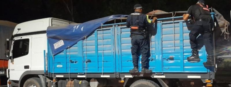 Efectivos de la Policía Caminera del Chaco supervisan la carga de un camión que transitaba por la ruta nacional 89.