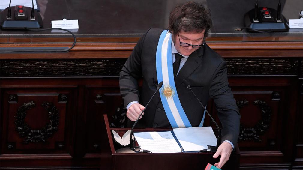 Diputados y senadores del Congreso de la nación, gobernadores, ministros de la Corte Suprema de Justicia, Embajadores y quienes nos acompañan hoy en este recinto, nos reunimos aquí como marca la Constitución nacional para comunicar el estado de nuestra nación a todo el pueblo argentino que nos está mirando a lo largo y a lo ancho de todo el país. En el día de hoy se cumplen exactamente 82 días desde que asumimos el desafío de conducir la nación en lo que es posiblemente el momento económico más crítico de su historia. Luego de más de 100 años de insistir con un modelo empobrecedor y habiendo olvidado casi por completo las ideas que hicieron grande en nuestro país, los últimos 20 años han sido particularmente un desastre económico, una orgía de gasto público, emisión descontrolada que tuvo como resultado la peor herencia que ningún gobierno en la historia Argentina haya recibido jamás. De hecho los déficits gemelos que heredamos alcanzaron los 17 puntos porcentuales del PBI, muchos de los datos económicos de la herencia que recibimos son públicos desde el día 1 en que tomamos el mando del país: cinco puntos de producto de déficit fiscal en el tesoro y 10 puntos de déficit fiscal generado por el Banco Central, sumando un total de 15 puntos de déficit consolidado; una deuda descomunal con importadores y organismos multilaterales de crédito que nos dejaban al borde del default; reservas netas negativas en el Banco Central por 11,200 millones de dólares; precios de energía y transporte reprimidos en algunos casos hasta un quinto de su valor real y el dólar con una brecha del 200% entre el oficial y el Paralelo; una emisión desenfrenada en los últimos años de gobierno por 13 puntos del PBI, sumados a los más de 15 puntos del PBI que se habían emitido. Durante los primeros tres años de gobierno a su vez durante la primera semana de diciembre la inflación minorista corría un ritmo del 3700 por ciento anual durante la segunda se aceleró al 7500% anual. Mientras que para aquellos que consideran que estos números son una fantasía la inflación del 52% mensual en mayorista implicaba una inflación anual del 17,000%.
