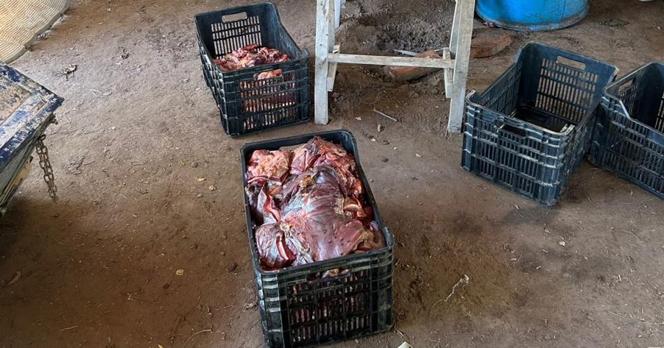Con suficientes pruebas respaldatorias y las órdenes judiciales correspondientes se realizaron allanamientos en dos propiedades pertenecientes a una familia de apellido Pallares, donde se secuestró gran cantidad de carne y materiales de refrigeración e instrumentos para faena, por un valor aproximado de $ 50 millones.