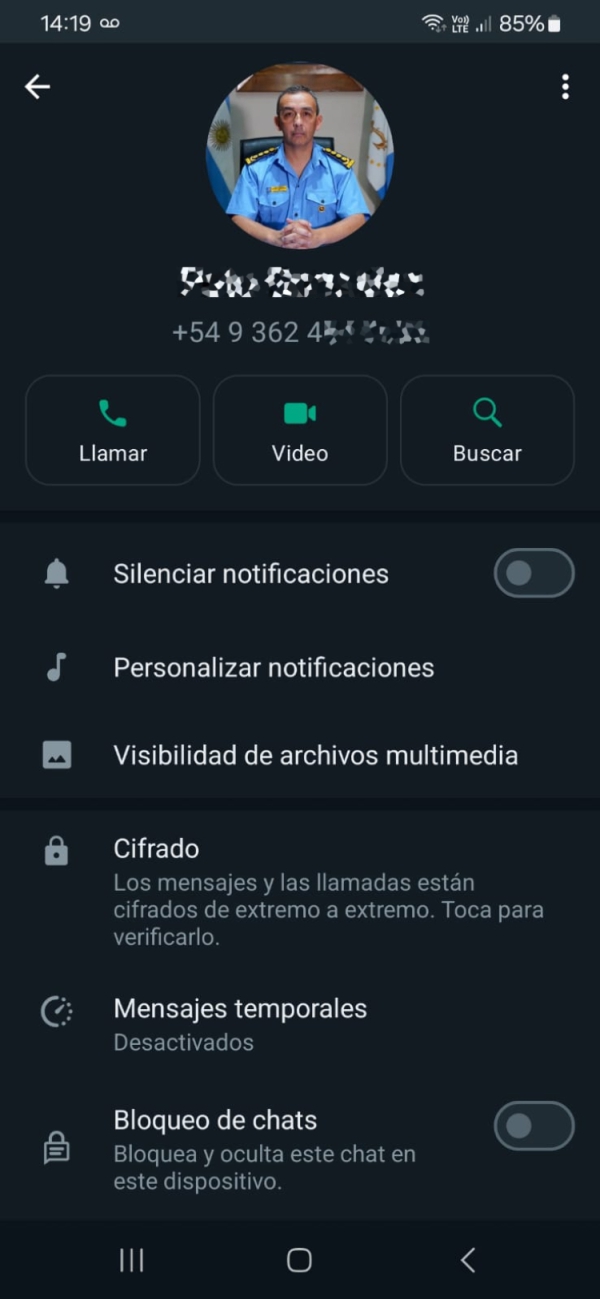Cuando recibe y activa el código, la aplicación WhatsApp dejó de funcionar por lo que decidió cambiar de número. Pasaron los días y se entera que con la línea que había tenido este problema, el número seguía activo y por el cual le pidieron a su jefa que le transfiera 20 mil pesos, lo que la mujer accedió. Lo llamativo de todo es que la foto de perfil que tenían era la del jefe de la Policía, Fernando Romero.