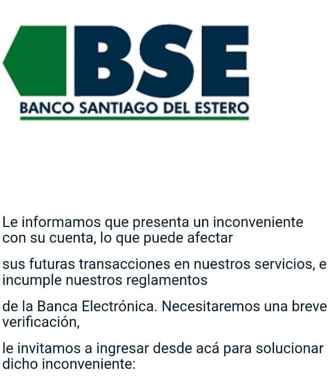 Se trata de un peligroso intento de estafa. El BSE nunca envía ni enviará a sus clientes mensajes por mail o por redes sociales solicitando datos de su clientela.