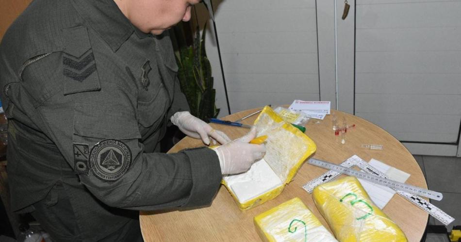 Al verificar su contenido, los gendarmes encontraron en su interior una sustancia blancuzca que arrojó positivo para cocaína, con un peso total de 3 kilos con 28 gramos.