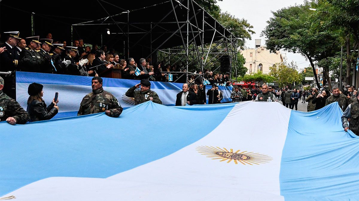 El acto finalizó con el desfile en el que participaron instituciones educativas, miembros de las diferentes divisiones de la Policía de la provincia y del Ejército Argentino y los veteranos de Malvinas.