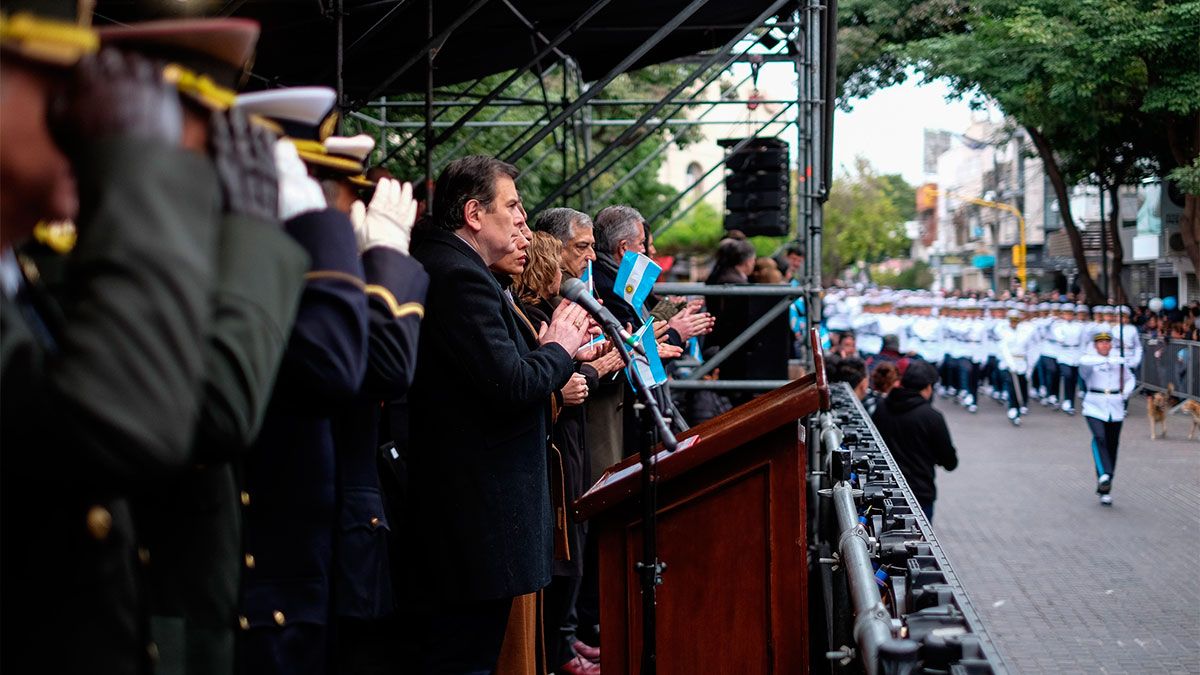 Tiempo de lectura: 1 minuto, 18 segundosEl mandatario estuvo acompañado por funcionarios nacionales, provinciales y municipales. En la oportunidad se realizó el izamiento del Pabellón Nacional, el solemne tedeum, el tradicional chocolate patrio y el desfile cívico y militar.