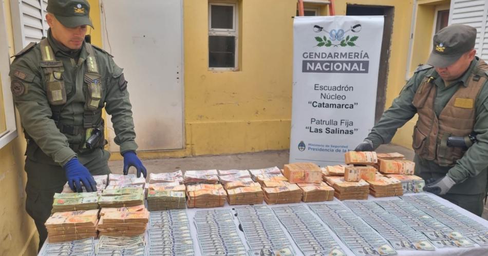Al efectuar el registro, los gendarmes hallaron en los habitáculos de la cabina, fajos de billetes de origen nacional y extranjero en efectivo, sin documentación que justifique su traslado.