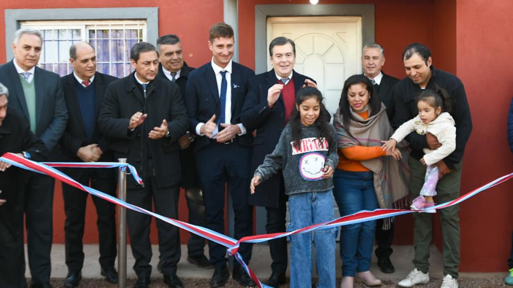 El recorrido por la ciudad comenzó por el domicilio de Rosa Cristina Zarza, en el barrio Las Mercedes, donde se hizo el corte de cintas y la entrega simbólica de llaves a la totalidad de las familias beneficiadas en esta ocasión por el programa que lleva entregadas alrededor de 30 mil viviendas en toda la provincia.