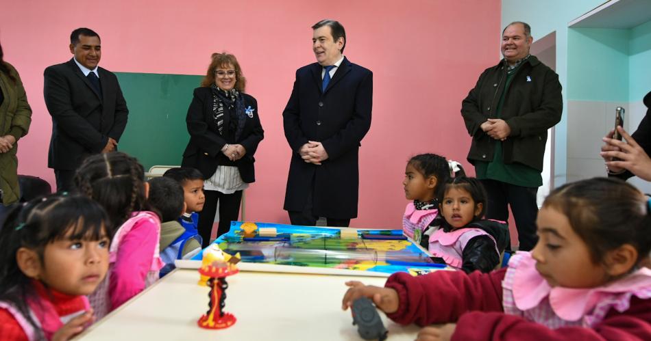 Luego la comitiva se trasladó a la Escuela N° 128 "José Ignacio Thames", en La Breíta, donde fue recibida por la directora del establecimiento, Patricia Ruth Hughes, quien acompañó a las autoridades en un recorrido por las renovadas instalaciones del establecimiento del Nivel Primario y del flamante Jardín de Infantes anexo.