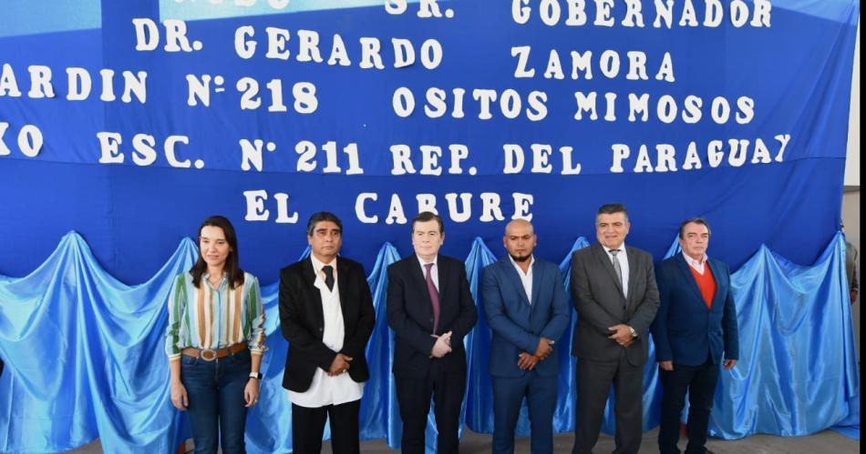 El gobernador Gerardo Zamora llegó este viernes a la localidad de El Caburé, ubicada a 384 km de la ciudad Capital en el departamento Copo, donde dejó inaugurado el nuevo edificio del Jardín de Infantes N° 218 "Ositos Mimosos" -anexo de la Escuela N° 211 "República del Paraguay"- a donde asisten 51 alumnos en dos turnos, obra que se suma a más de 600 establecimientos del Nivel Inicial que fueron construidos en los últimos años en toda la provincia.