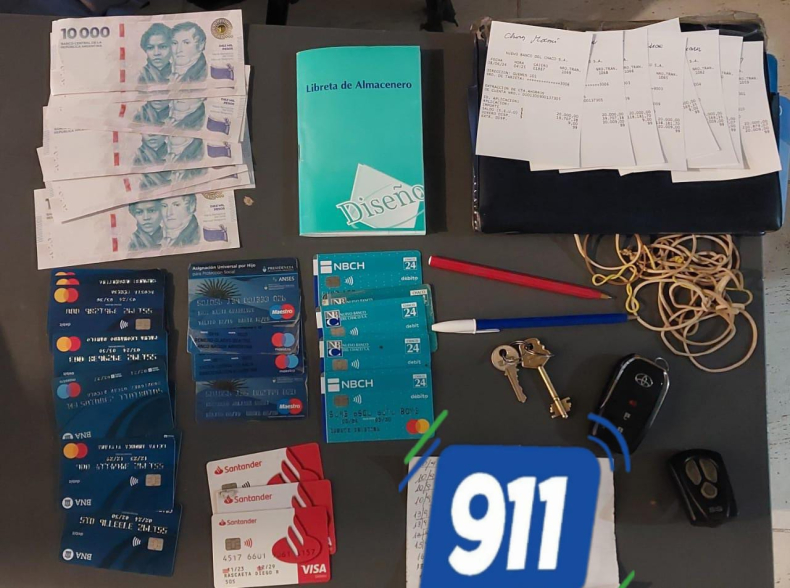 Al llegar al lugar, los efectivos policiales constataron la veracidad de la denuncia e identificaron al sujeto como Miguel Roberto Prosh, de 73 años, quien tenía en su poder las 23 tarjetas de débito, $160.000 en efectivo, dos libretas de almacén con anotaciones de nombres y números, ocho tickets de comprobantes de extracción de efectivo y una camioneta Toyota Hilux.