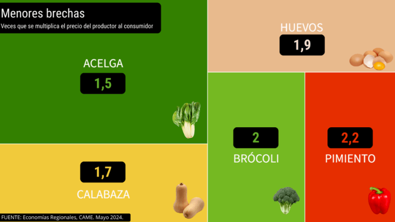 La brecha en los productos frutihortícolas y en los de origen animal.
