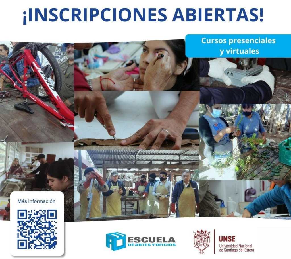 Tiempo de lectura: 1 minuto, 8 segundosLa Escuela de Artes y Oficios de la UNSE abre la inscripción para su renovada oferta de cursos y talleres del segundo semestre del año, en modalidad presencial y virtual, en sus líneas de formación profesional en oficios, artísticos, de interés general y capacitación docente, con importantes novedades para una rápida inserción en el mercado laboral.