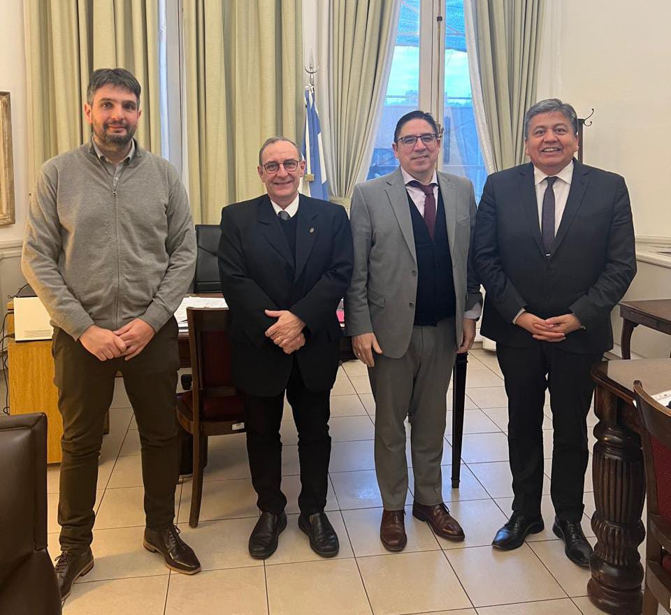 En encuentro, el Rector, acompañado por el decano de la Facultad de Ciencias Médicas, Eduardo Allub, fue recibido por el subsecretario de Políticas Universitarias, Alejandro Ciro Álvarez, y el director nacional de Presupuesto e Información Universitaria, Juan Marcos Oudin.