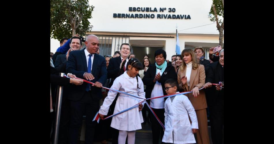 En el marco de su visita oficial a esta localidad serrana, el gobernador Zamora también inauguró el renovado edificio de la Escuela N° 30 "Bernardino Rivadavia", a donde asisten 202 alumnos. En este lugar se hizo la reconstrucción de techos y mejoras integrales en seis aulas, dirección, biblioteca, secretaría, cocina-comedor, depósito, sala de Tecnofood, grupo sanitario y patio de formación.